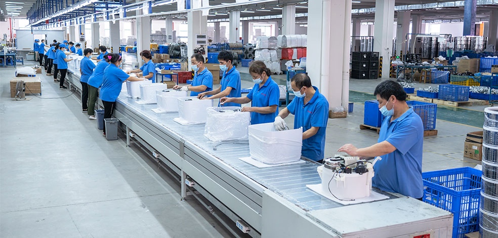 10萬(wàn)㎡大型生產(chǎn)基地,26臺(tái)注塑機(jī),1條噴涂機(jī)器人涂裝生產(chǎn)線,4條機(jī)器人沖壓自動(dòng)化生產(chǎn)線和3條組裝線 ,月產(chǎn)量高達(dá)50000臺(tái)
